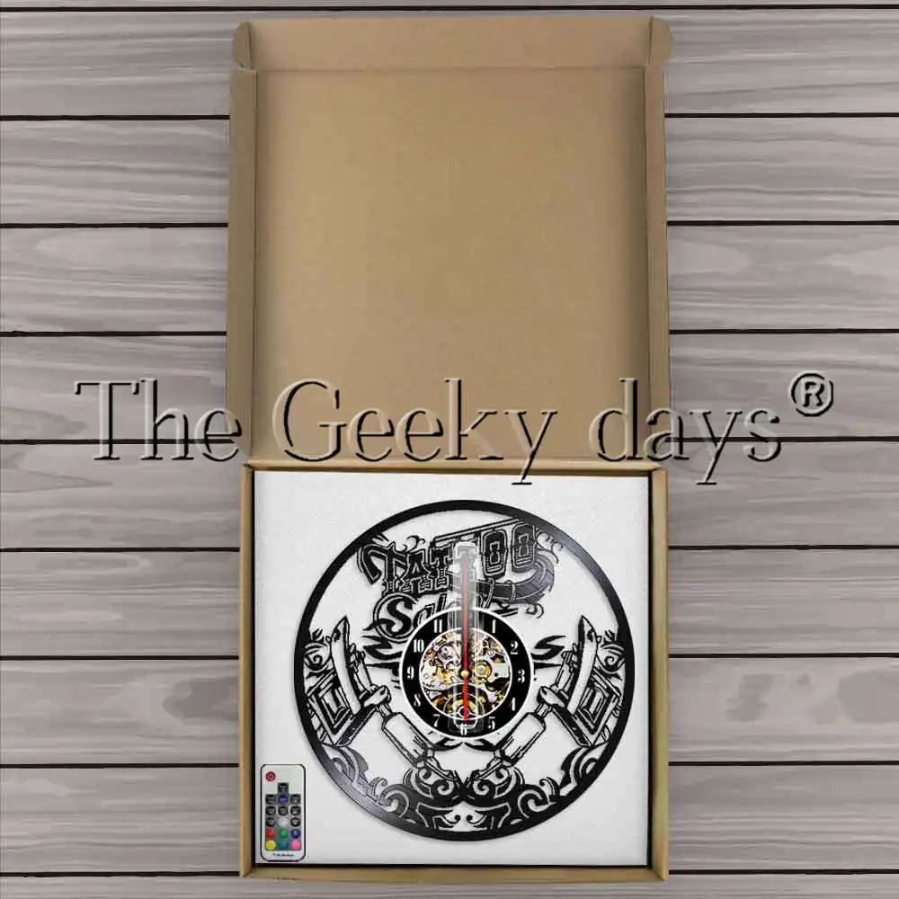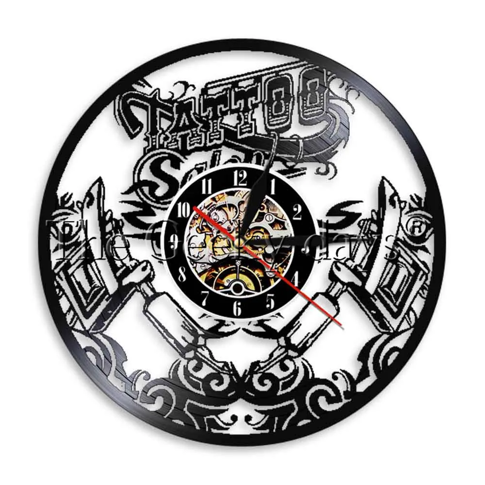 Татуировка светодиодная вывеска татуировки светодиодный светильник виниловых пластинок стены тату часы пистолет Салон битник современный декоративный светильник