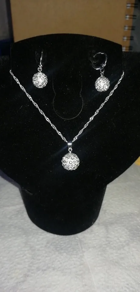 Пришёл товар, бракованный, сережки немного корявые, стразы были не всё на месте, вместо их, что то белое (сам шарик из чего сделан). У кулона плохое крепление. Не советую. Открыла спор, деньги не вернули.