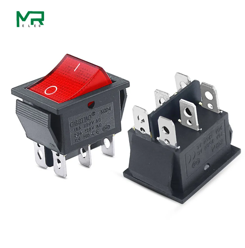 Переключатель питания KCD4, 2-позиционный3-позиционный 6-контактный, электрическое оборудование светильник ключателем, 16 А, 250 В20 А, 125 В переменного тока, 1 шт.