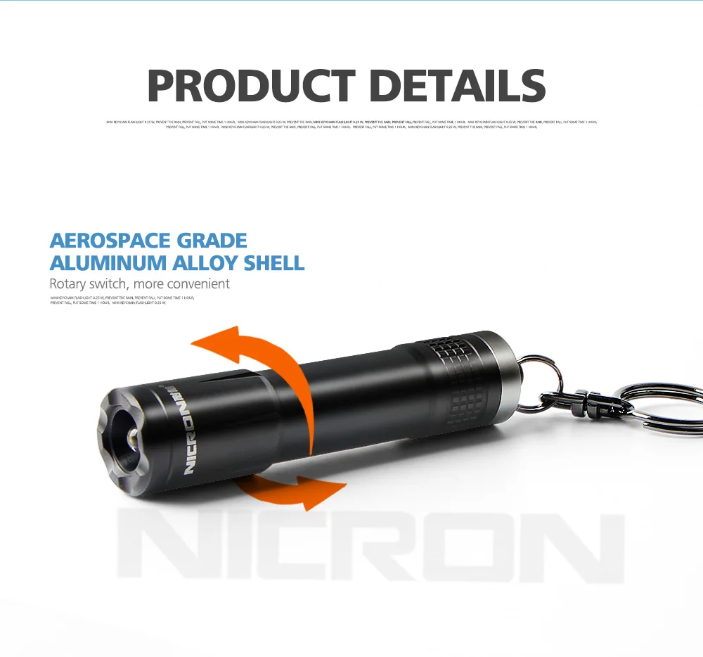 Мини-фонарик NICRON, 20 лм, 24 м, 1xAAA, 10 часов, брелок Светильник ключей, водонепроницаемый, IPX4, для дома, светодиодный фонарик N1