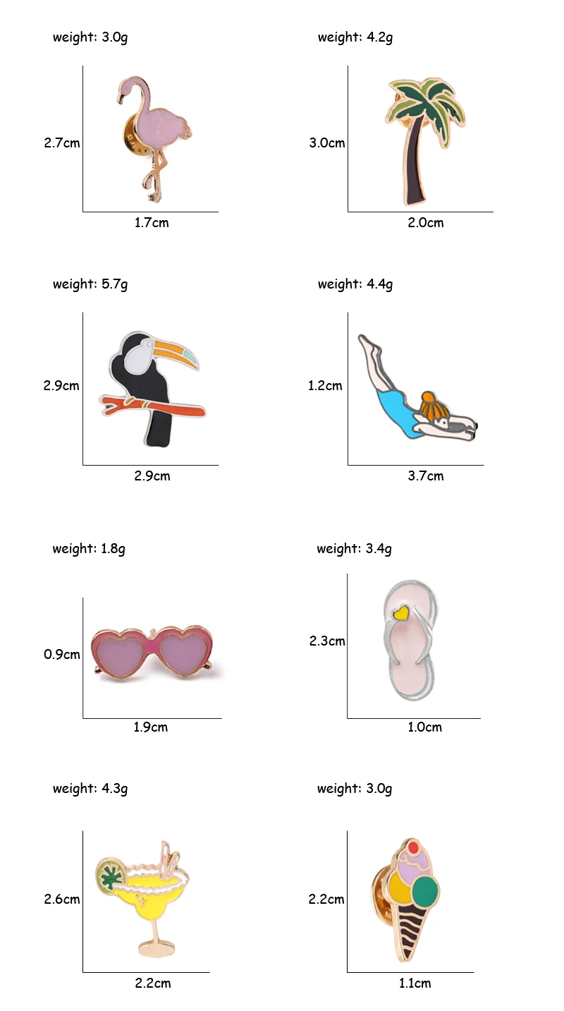 Металлические тапочки птица мороженое апельсины кокосовое дерево Спорт Девушка Солнцезащитные очки брошь одежда куртка сумка значок Ювелирные изделия Подарки для девочек