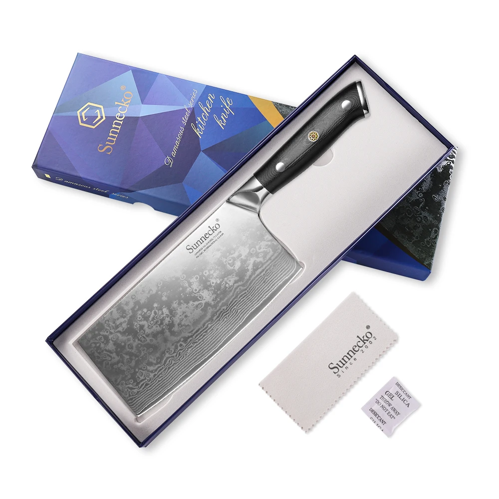 Нож-Кливер SUNNECKO VG10 из дамасской стали, японское лезвие 7 дюйм...