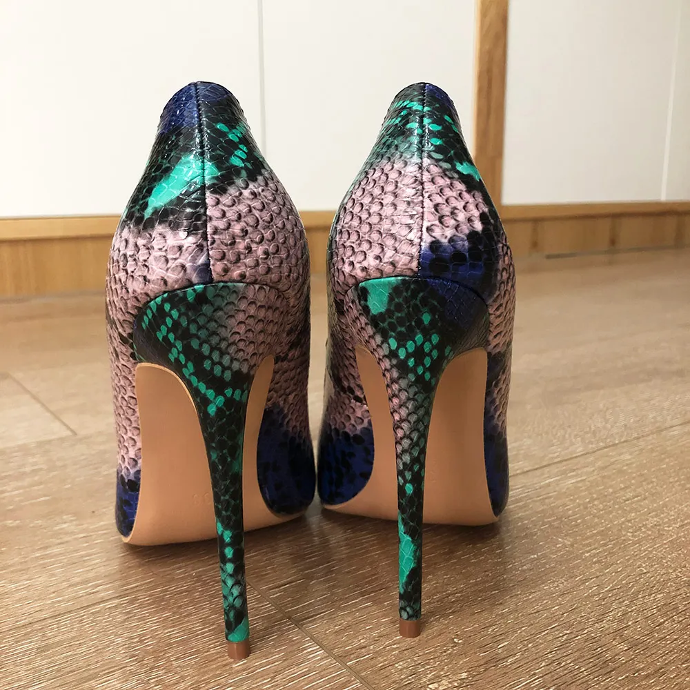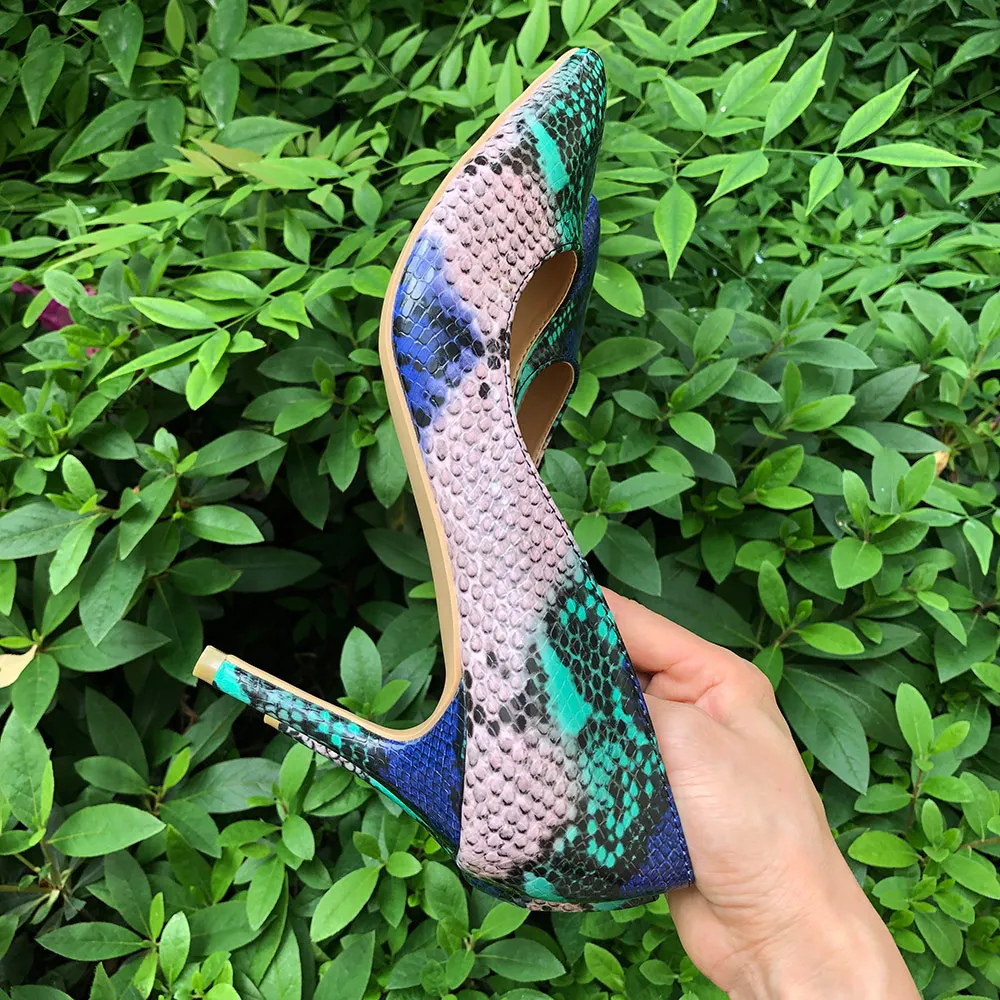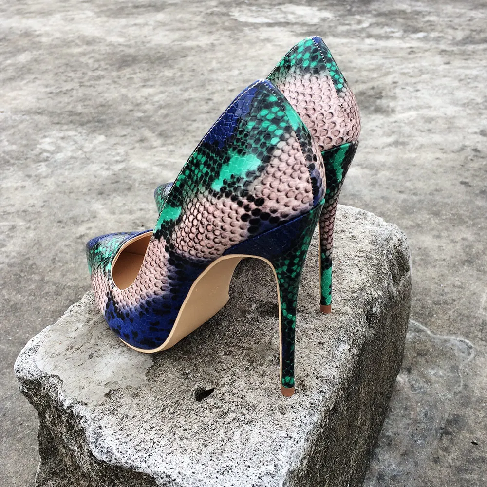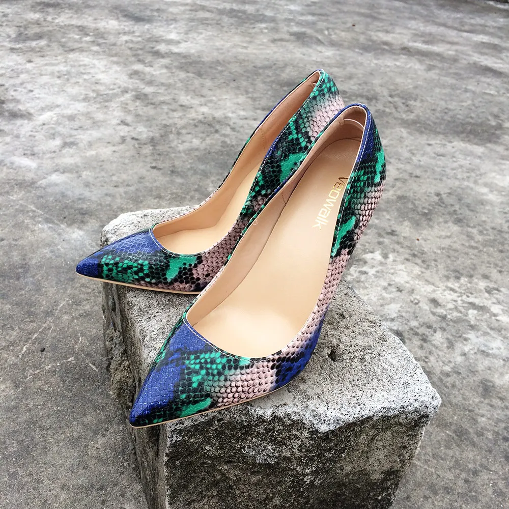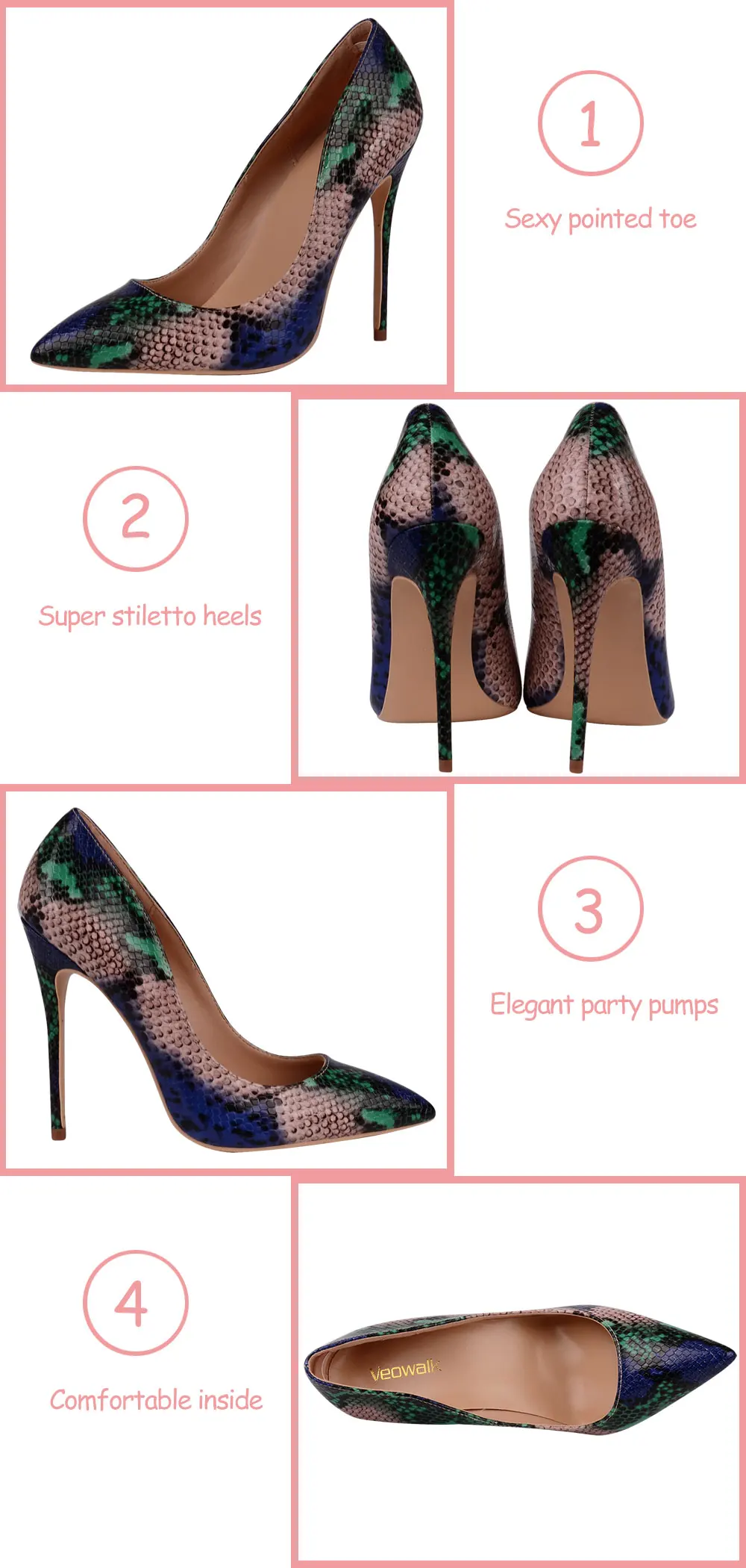 Женские туфли-лодочки Veowalk вечерние змеиным принтом, на высоком каблуке 12108 см