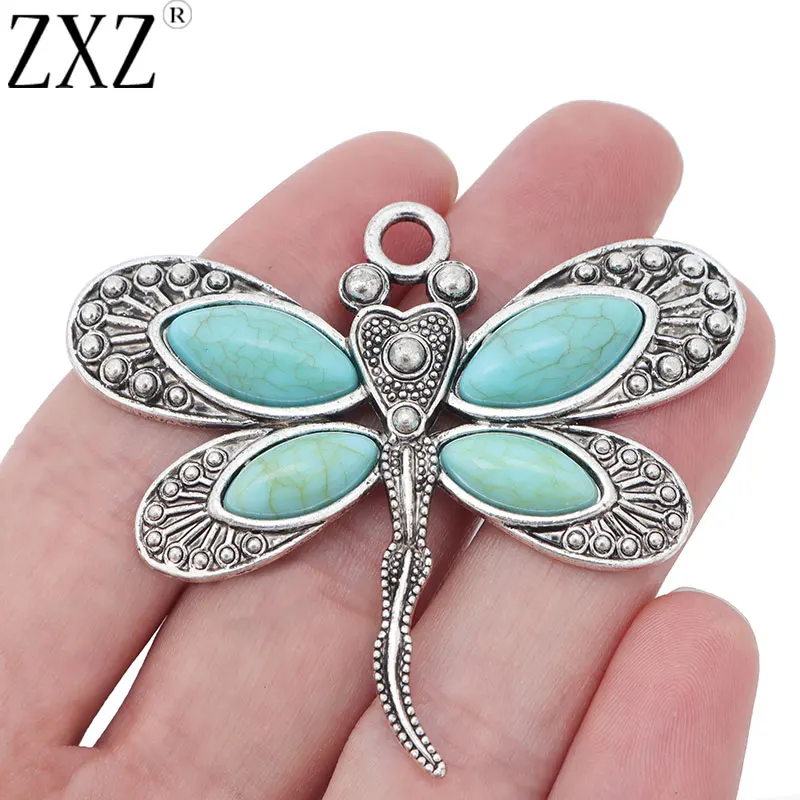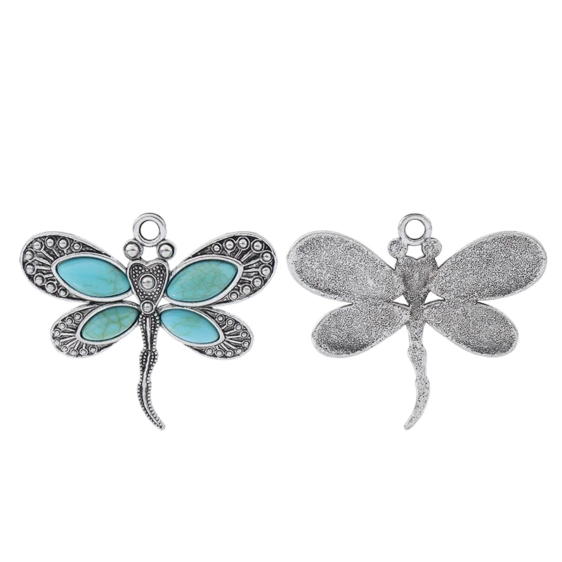 2 шт., из серебра Подвески с кулоном стрекозы пробы, с искусственными БИРЮЗОВЫМИ камнями, 61x54 мм