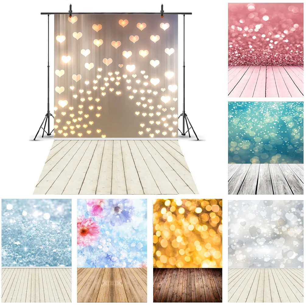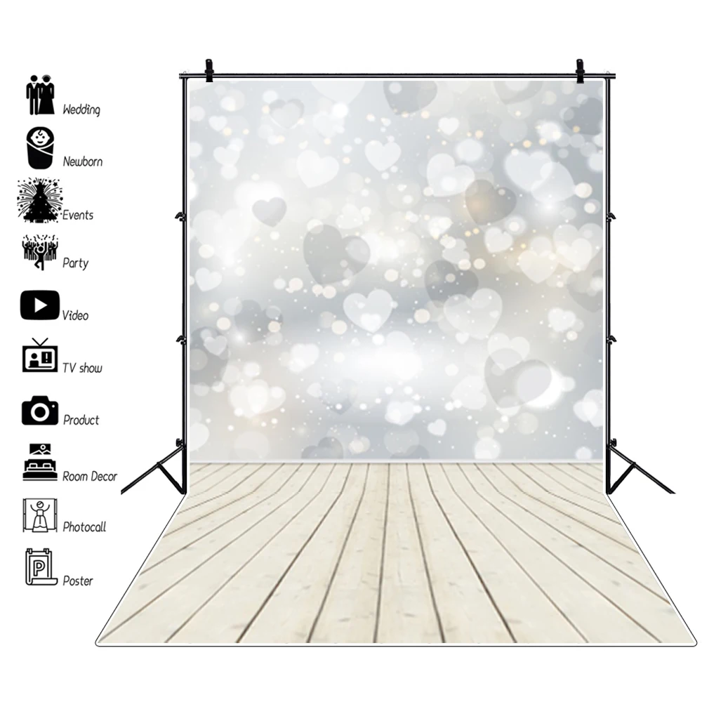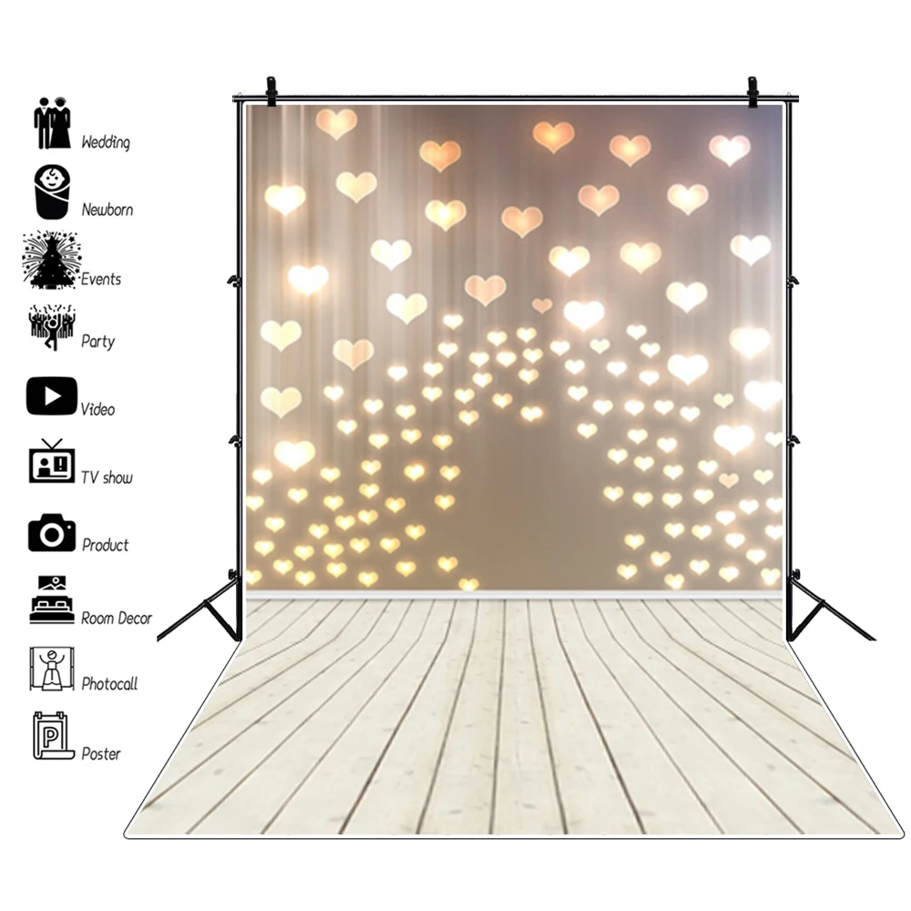 Фон Laeacco для студийной фотосъемки новорожденных с изображением любовного сердца и деревянного пола