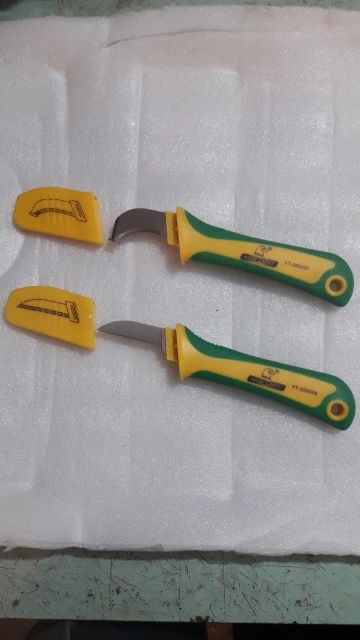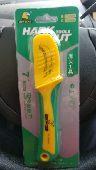 очень плохая заточка. не ровная заточка лезвия. инструмент полностью не рабочий. кабель не зачищает совсем. постоянно вылетает из кабеля, так как пятка не гладкая и прорезает оболочку кабеля изнутри. опасно работать, так как постоянно срывается. ведь чтобы он хоть немного начал резать, нужно сильно давить. после первой зачистки руки сильно устают. портит изоляцию жил. заточить будет очень сложно иззи не стандартного лезвия. пятку еще как то можно обточить.