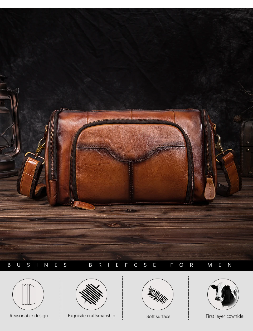 Модная повседневная мужская сумка-мессенджер из натуральной кожи, ранец из воловьей кожи, дизайнерская сумка через плечо на ремне, школьный портфель для книг для мужчин, B258