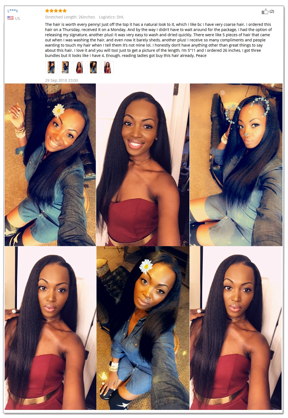 Волосы идеальны каждый раз, когда я заказываю у вас, это всегда удовольствие и всегда здорово. Спасибо!