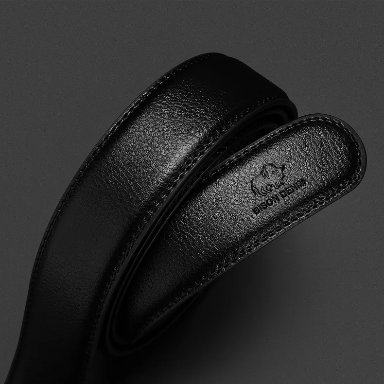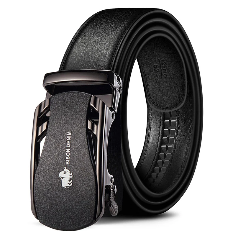 Мужской ремень из натуральной коровьей кожи BISON DENIM, черный ремень с автоматической пряжкой, деловые мужские ремни высокого качества, N71319