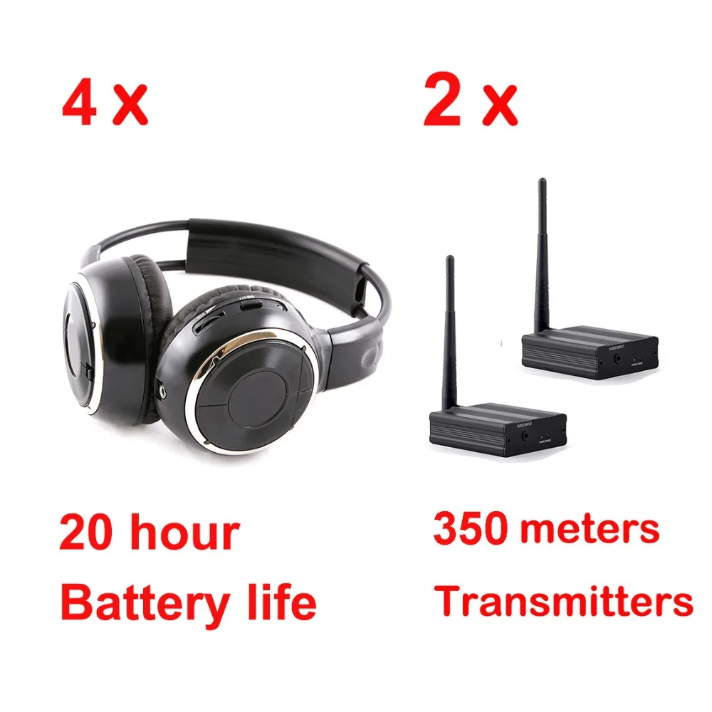 Бесшумные наушники со звуковой системой диско (4 складных наушника + 2 передатчика)