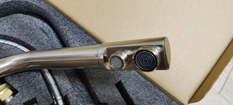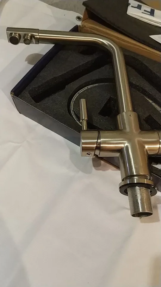 Хороший смеситель, за гуманные деньги! Удобно что уже вложен в коробку адаптер доя подключения фильтрованной воды. Поставил на кухню и подключил воду ,работает хорошо! Минусы, после отключения воды, капает пол минуты, так как гусак стоит почти горизонтально и пока с него не выйдет вода он капает. Второй минус для тех у кого не было высокого смесителя, то это брызги. Но у нас это в меньшей степени, так как заказал с али хорошую и главное глубокую мойку и брызги так не беспокоят! Доставили быстро, получил на почте по моему за 5 дней.