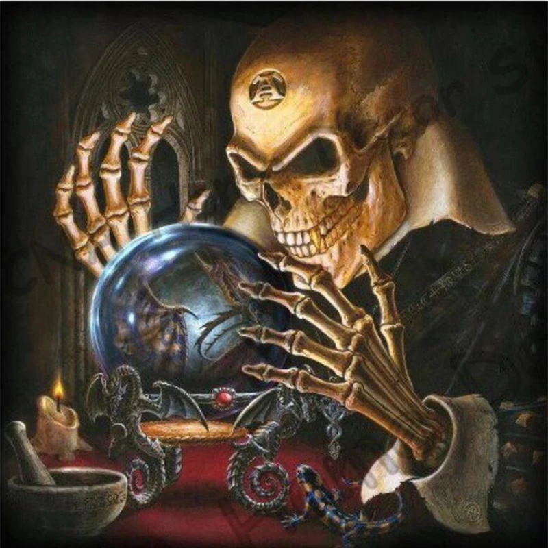 100% полноразмерная 5D картина из страз сделай сам, вышивка крестиком, Череп, волшебник, 3D Алмазная мозаика, полные круглые картины стразы, вышивка, Декор