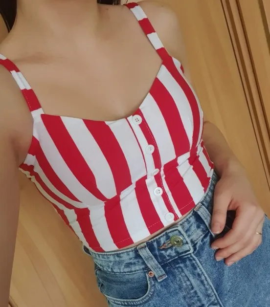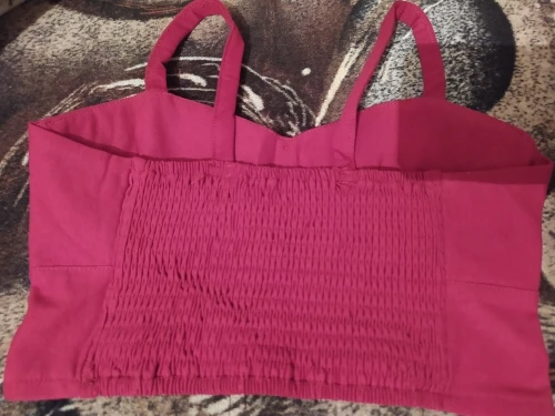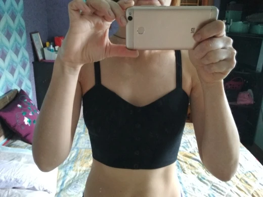 Хороший топ, он не хлопковый, а скорее трикотажный, сзади на резинке. Единственный минус, это куча паралона в чашечках, я такое терпеть не могу, поэтому сделала два небольших разреза под чашечками, отпорола паралон, он прострочен по центру, достала его и зашила разрезы. И стало то, что нужно.