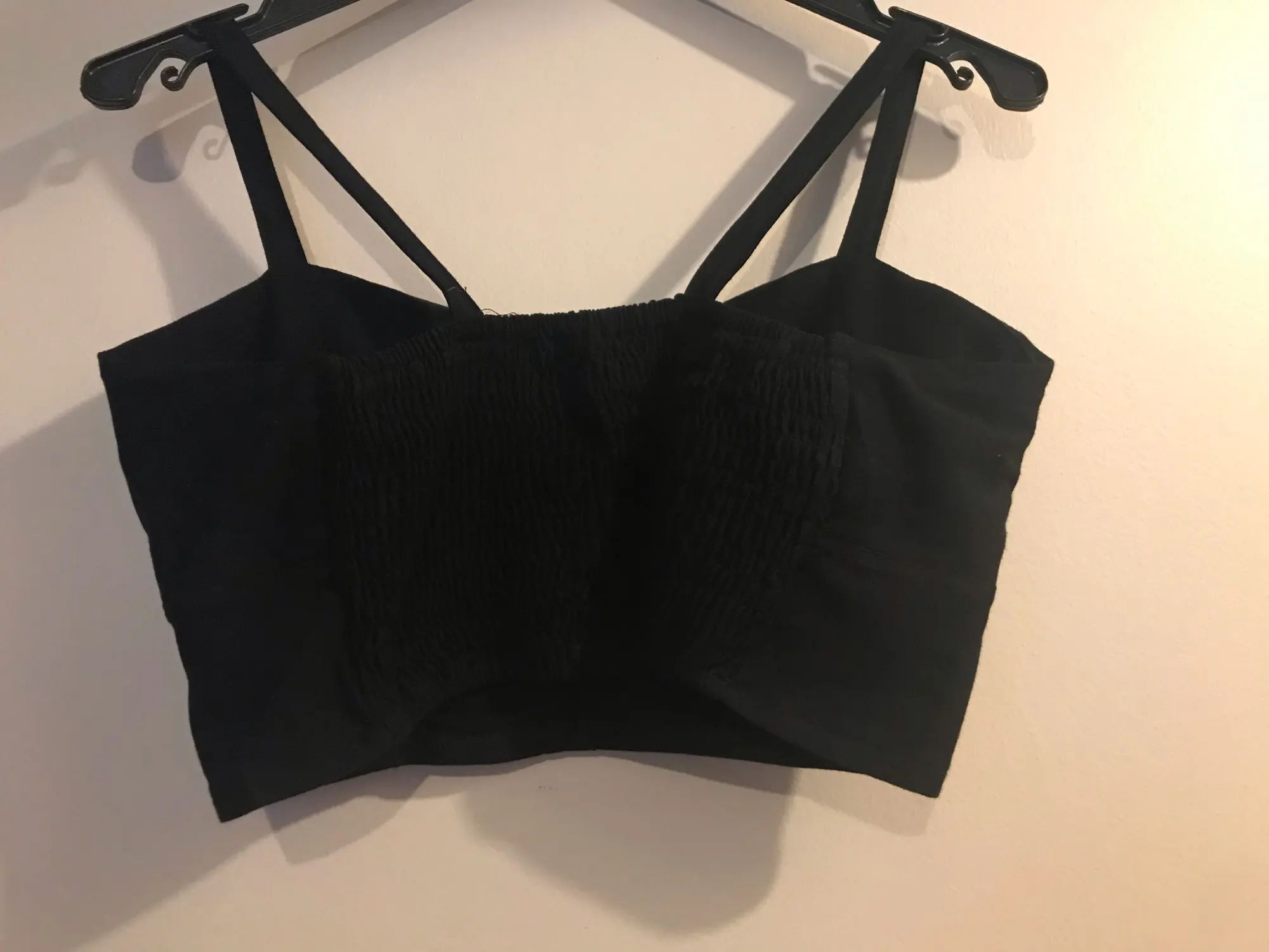 Топ отличного качества пришел без дефектов,на ОГ 86 размер М сел идеально. Бретельки не регулируются. На спине резинка.