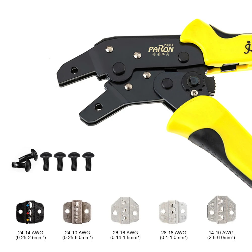 Эти профессиональные обжимные инструменты с саморегулируемыми обжимными плоскогубцами и зачистки проводов отличаются удобством, эффективностью и безвредностью сердечников кабеля. Он прост в использовании, просто удерживайте ручку и управляйте ею один раз, чтобы успешно нажать плотно прилегающие провода и клеммные блоки.Особенности:С 5 взаимозаменяемыми клеммами с различными диапазонами обжима.Профессиональный инструмент для обжима проволоки с саморегулируемым механизмом храповика для удобства эксплуатации.Подходит для большинства неизолированных обжимных терминалов и разъемов.Мульти-функциональный провод для зачистки с модернизированной конструкцией и многое другое одноразовая бритва с удобной ручкой для проводов от 24 до 10AWG (0,2-6,0 мм ⊃ 2).Благодаря большому захвату ручки, легкая и компактная конструкция и конструкция ручки обеспечивают идеальный эффект обжима.Разработан в соответствии с инженерными факторами человека, он может экономить 50% энергии при обжиме.Пластиковый ящик для инструментов имеет гидроизоляцию поверхности и больше подходит для переноски и длительного хранения.Мульти части один