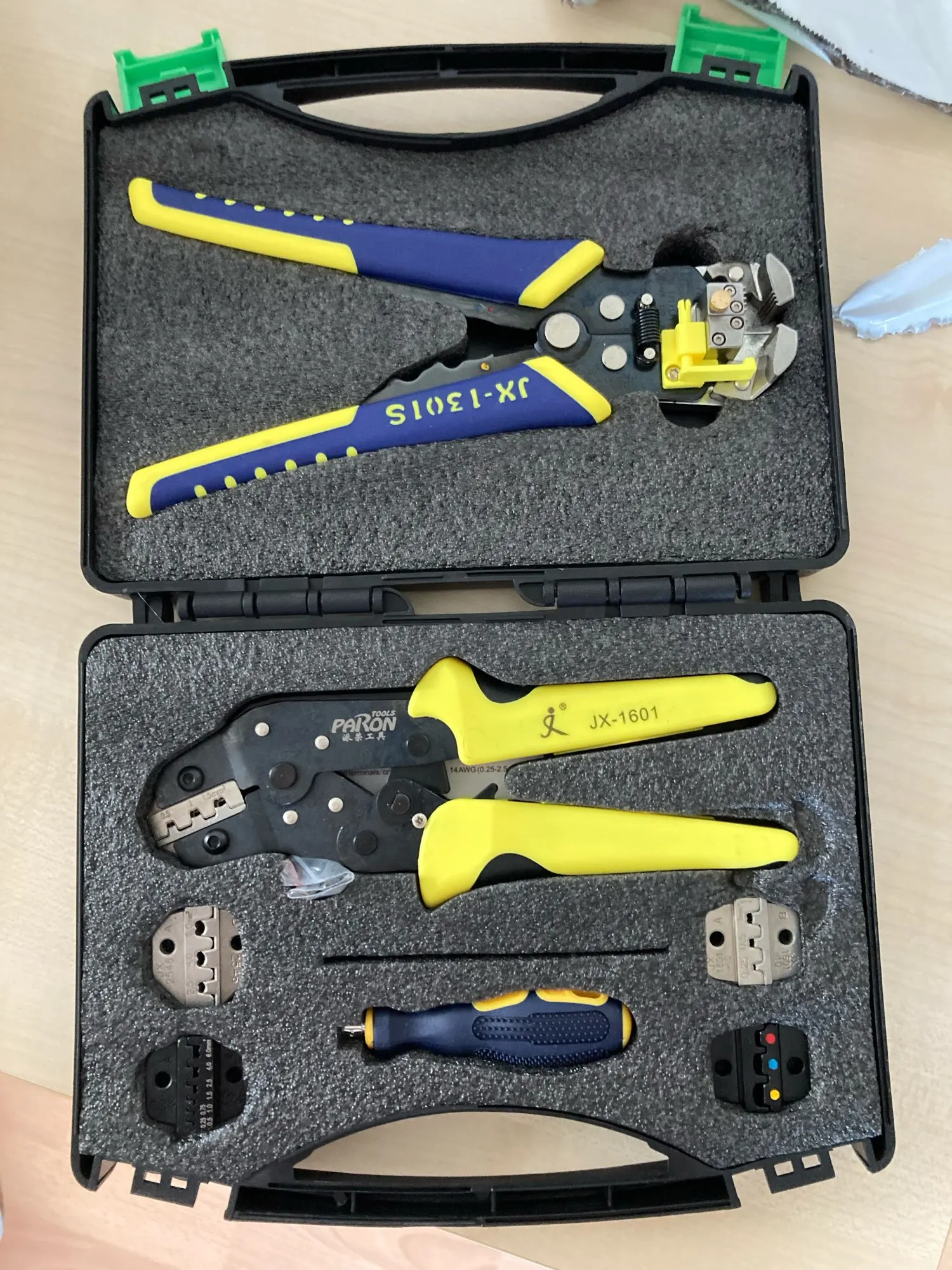 Посылка:1 * JX-1601 щипцы для проволоки1 * JX-1301S автозачистки проводов1 * S2 отвертка4 * Запасные штампы4 * винты1 * ящик для инструментов