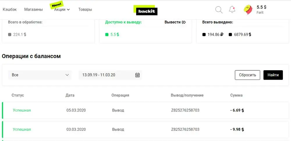 Получил, все нормально работает! Уже получил более $6500 через сервис Cashback,при этом каждый месяц получаю более $200! Фото прилагаются. Нет ограничений выплатам! Реальные деньги! Вы получаете обратно деньги за то, что покупаете в интернет магазинах. Присоединяйтесь! Получайте выплаты от 5,5% до 90% возврата от суммы каждого вашего заказа на AliExpress, и в сотнях других магазинов. Сервис работает официально! Просто скопируйте ссылку в строку в браузере elis.kz нажав на ссылку "Кэшбэк до 90%".