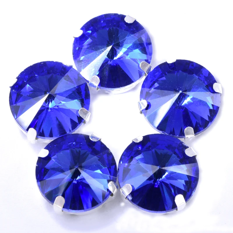 5 размеров, разноцветные Круглые Rivoli, стразы для пришивания, Серебряные Кристаллы, стразы для пришивания, аксессуары для одежды, B0948