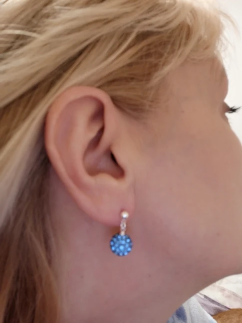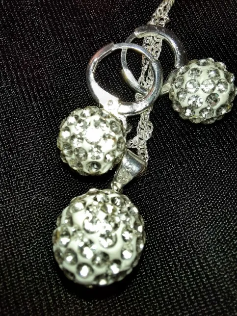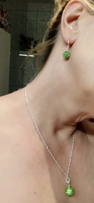 Ładne, świecące, trochę krzywo te cyrkonie zostały przyklejone, ale nie widać tego aż tak bardzo. Ładnie się mienia, kolczyki super, kolor piękny, bardzo ładnie się prezentuje komplet. Jestem bardzo zadowolona z zakupu, z pewnością odwiedzę jeszcze ten sklep. Ogólnie jestem zadowolona z produktu, chociaż czekałam na niego miesiąc dłużej