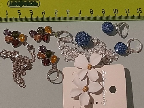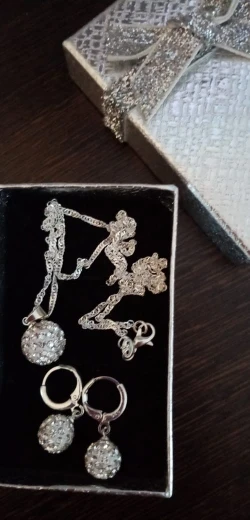 Очень красивый, блестящий наборчик за 100₽ - просто подарок. В реале выглядит и блестит круче, чем на фото) Надевала на новый год, все хвалили и заглядывались✨. Куплю ещё такой набор сестре, ей очень понравился. Спасибо продавцу, за такую красоту