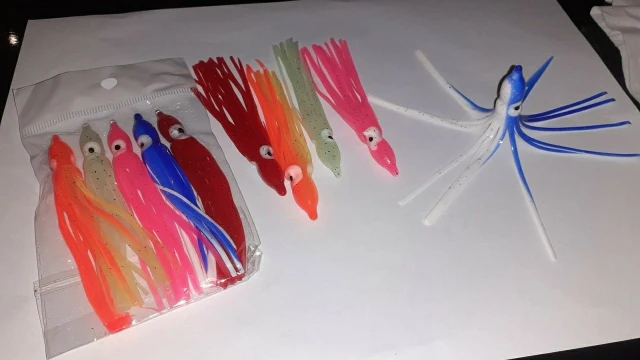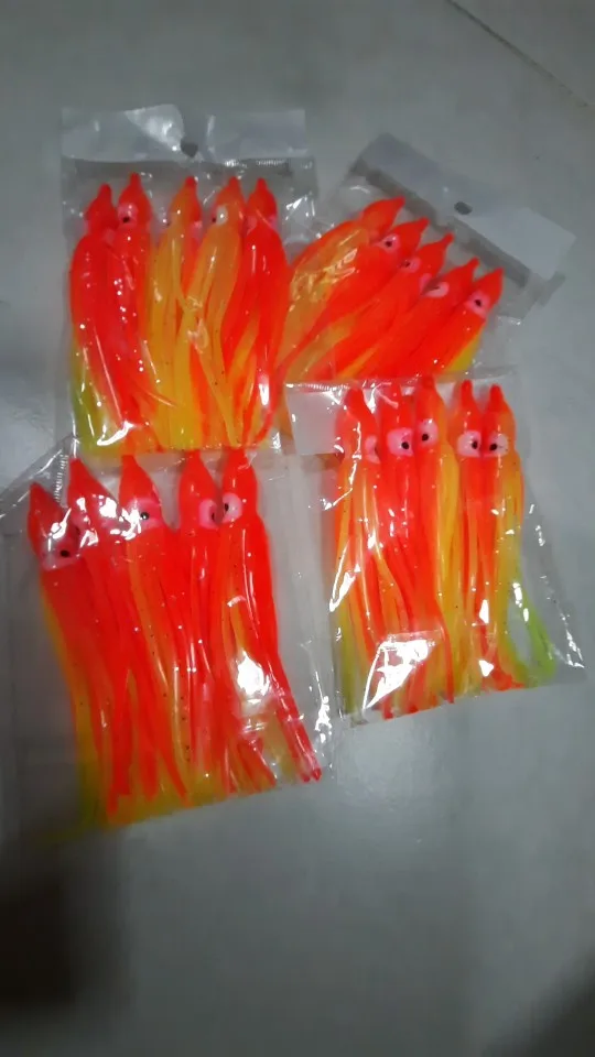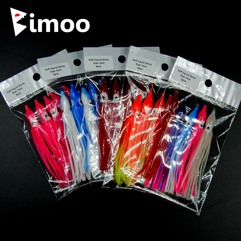 Bimoo 2 сумки = 10 шт. 9 см мягкий Кальмар юбки оранжевые красные розовые синие светящиеся пластиковые юбки осьминог