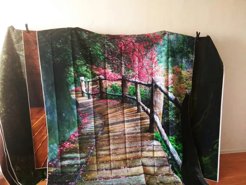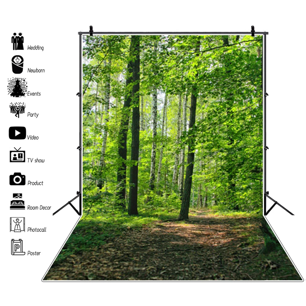 Фон для фотографий Laeacco, весенний пейзаж, зеленый лес, цветущие деревья, деревянная дорожка, детский портрет, фон для фотостудии