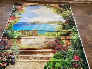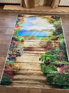 Посылка дошла до Казахстана за 39 дней. Упаковано хорошо., в пупырчатую бумагу. Очень насыщенные цвета картины!! Думаю, что будет смотреться на стене хорошо)) Ткань тонкая, пока не решили на что будем клеить. Сам пейзаж очень красивый!!!Спасибо большое продавцу!!!! Рекомендую!!