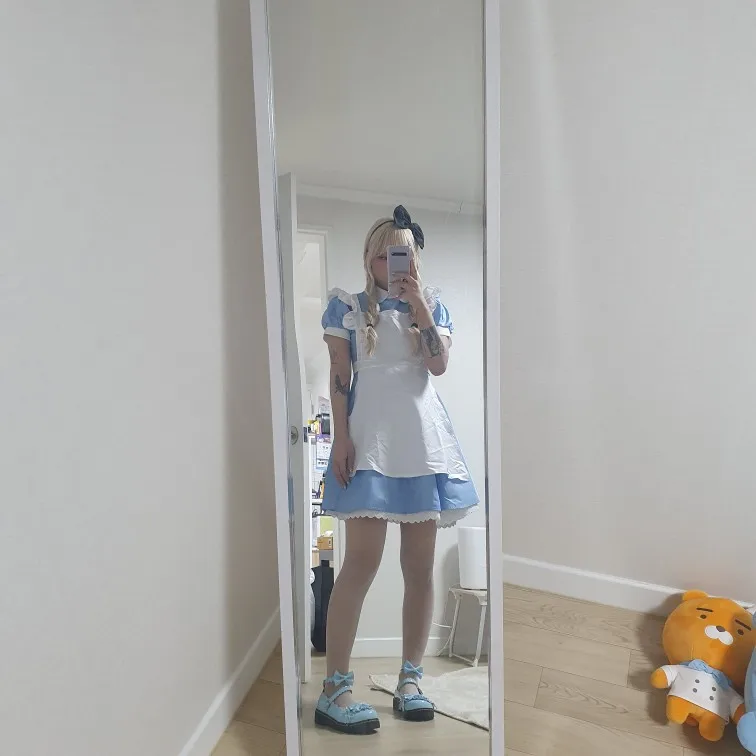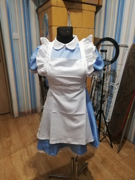 Я влюблена. Это так мило! Материал самого платья очень плотная синтетика. А фартук из мягкой синтетики. В комплекте был черный бант. Подол юбки внизу двойной. На мои параметры, 93-70-100 см, xl сидит свободно. Для меня, на 165 рост платье коротковато.. В нем лучше не наклоняться Может кому то и так будет хорошо. Прибыло за 13 дней до Сибири. И отправили мне в тот же день как заказала. Я очень рада этой покупке. Продавец положил приятный подарок. Спасибо!