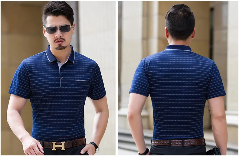 Женская летняя рубашка-поло из вискозы 95%, Мужская дышащая рубашка в горошек и полоску в деловом стиле