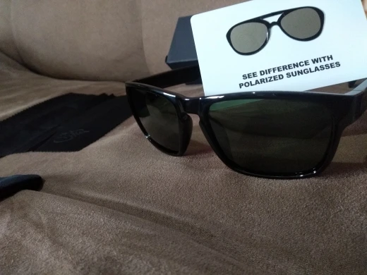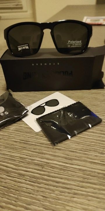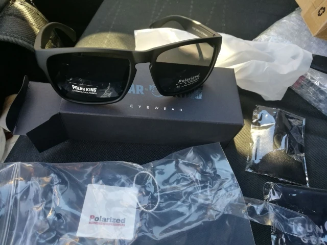 Очки отличные! Пришли на 10 дней раньше ожидаемого. Затемнение мощное для яркого солнца то что нужно. Комплектация жирная ! пришло в коробке в которой сами очки, мешочек, тряпочка-фибра и пластиковая карточка с картинкой для проверки на поларойдность) короче топ жир за гроши