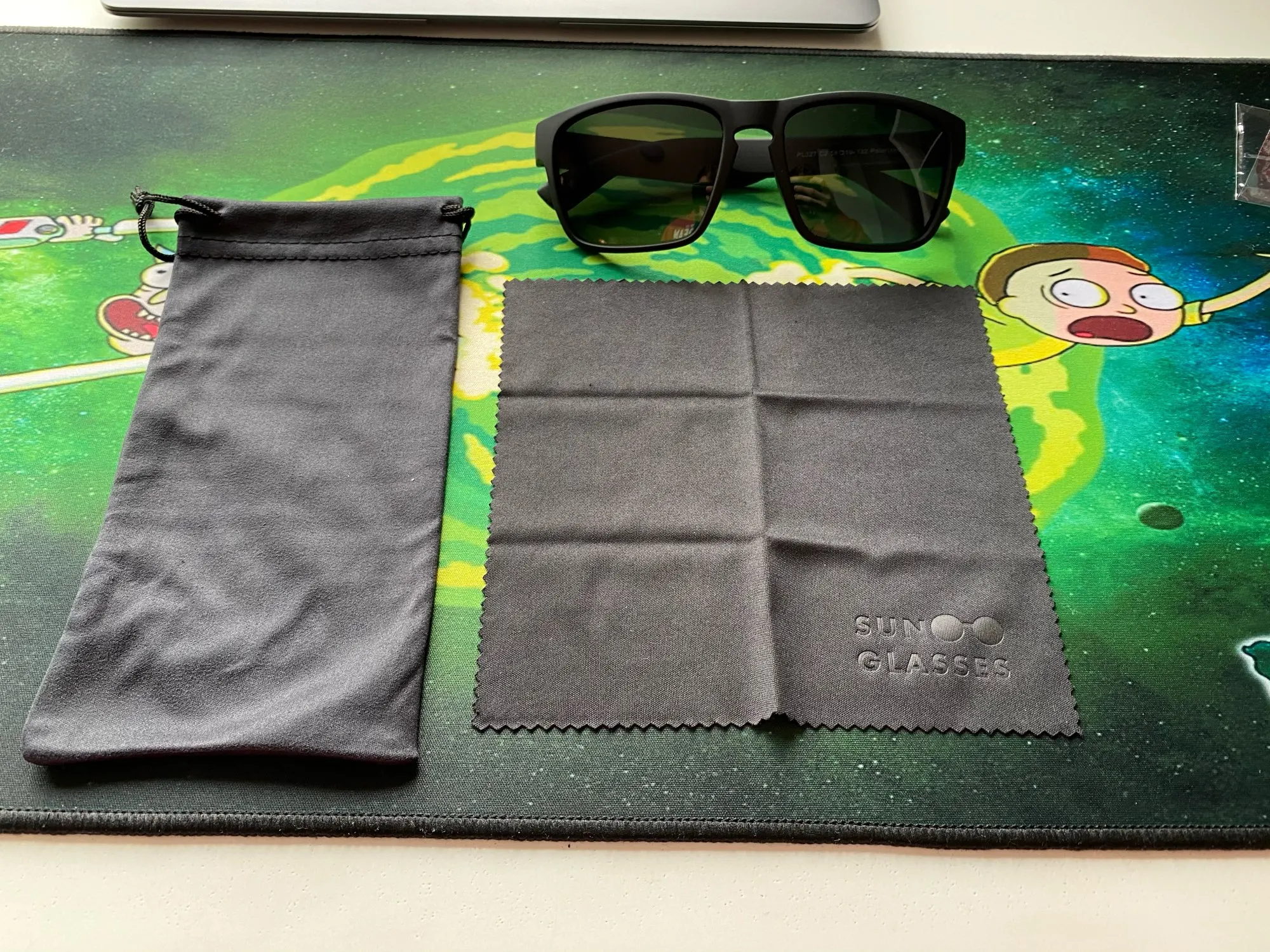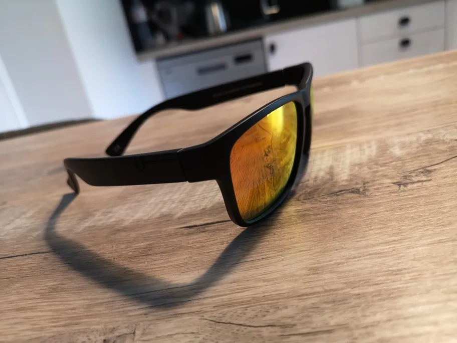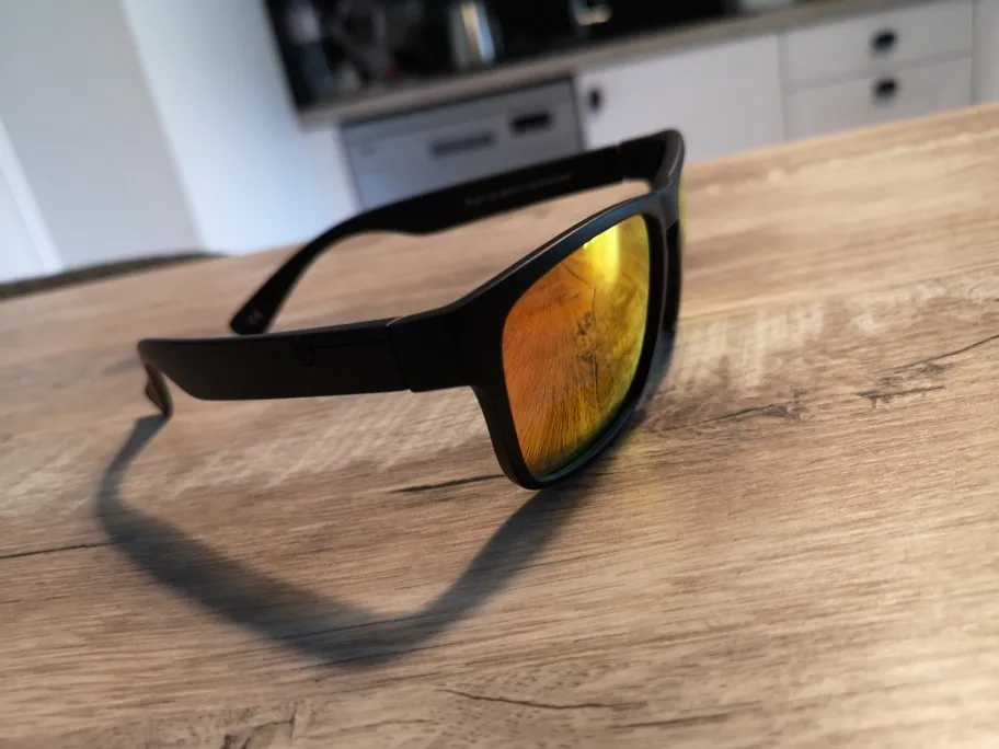 Очки крутые, хорошо затемняют и сделаны из пластика с очень приятным покрытием. В комплекте мешочек для переноски тоже удобный и приятный на ощупь, а также тряпочка для протирания очков. Я доволен!