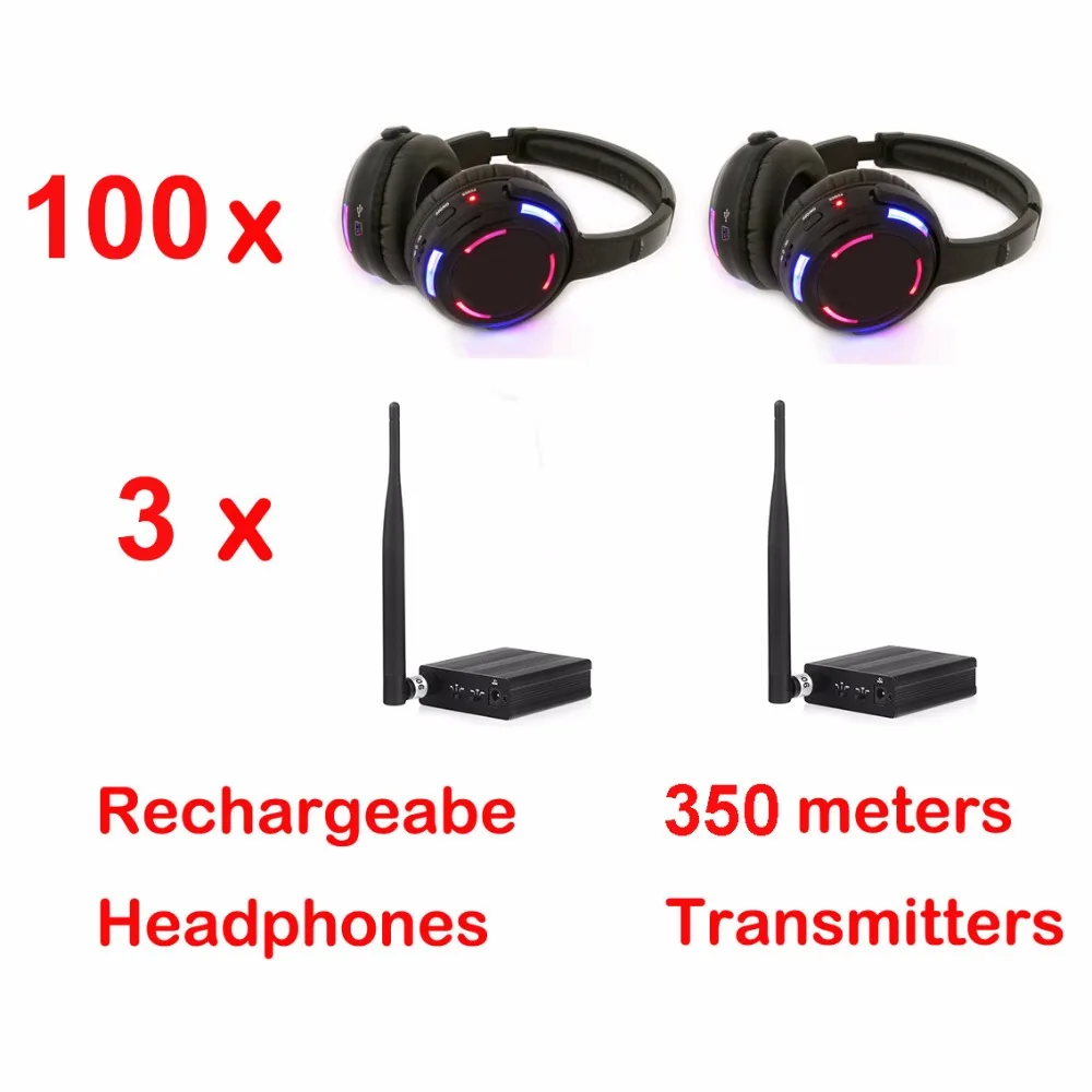 Профессиональный светодиодный бесшумный диско 100, расстояние 500 м, наушники с 3 передатчиками