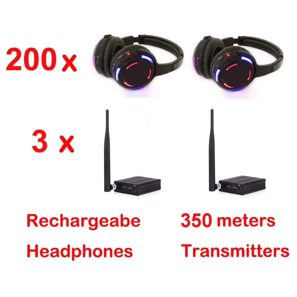 Профессиональные бесшумные наушники с дистанционным управлением 500 м, светодиодный дисплей диско 200, 3 передатчика, радиочастотная Беспроводная связь, для клубов, вечерних совещаний, трансляций