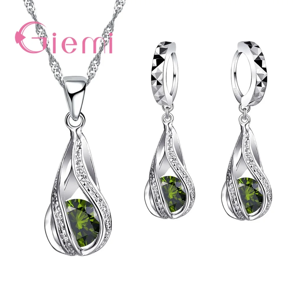 Женский комплект украшений из ожерелья и сережек с подвеской в виде капли воды из 100% стерлингового серебра 925 пробы с кубическим цирконием, свадебные комплекты