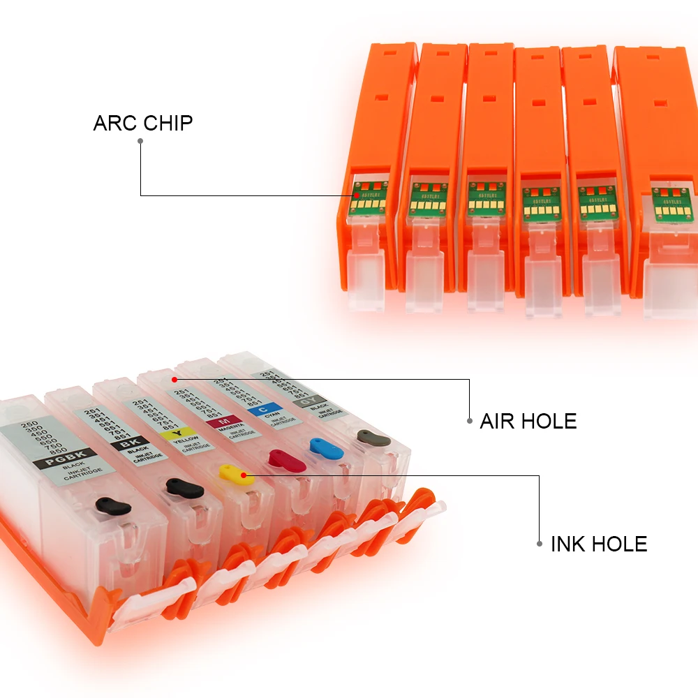 1 х PGI250 PGBK пустой многоразовый картридж с чипом arc