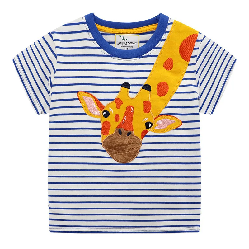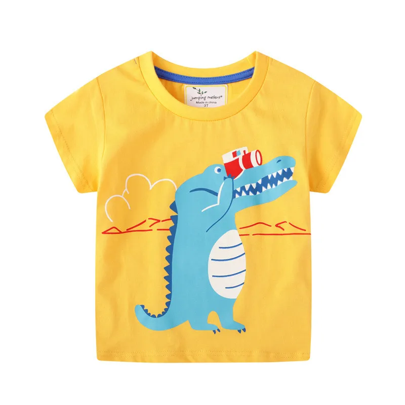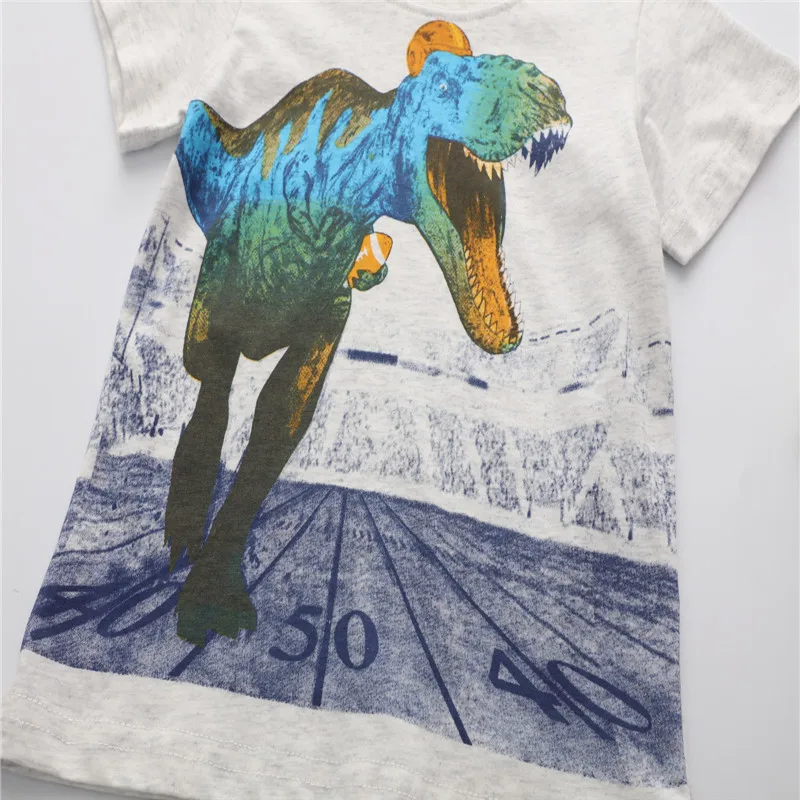 Футболка для мальчиков jumping meters, летняя футболка в полоску с коротким рукавом и принтом динозавра