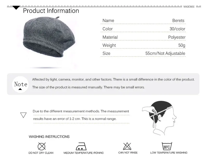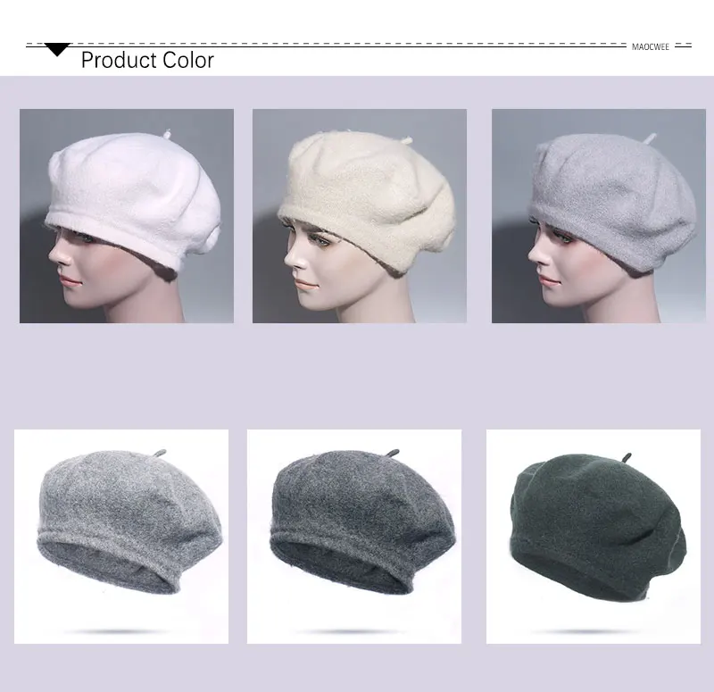 Береты Женские однотонные из искусственной шерсти, Осень-зима 2019