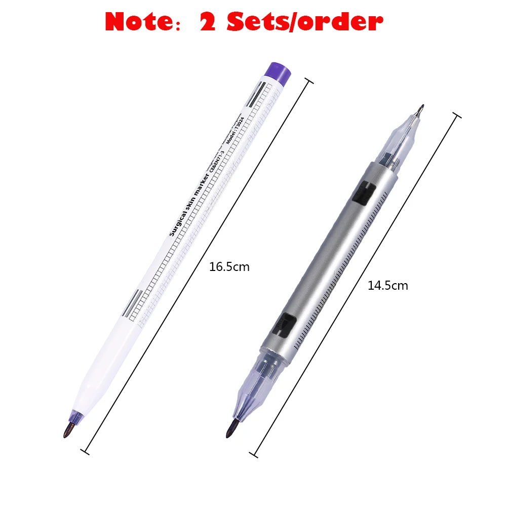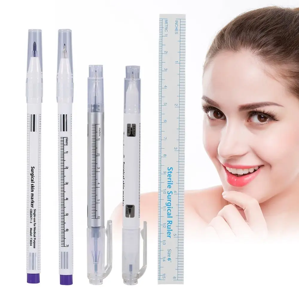 2 комплекта, одноразовый маркер для татуировки кожи, 4 вида, водонепроницаемый хирургический инструмент для пирсинга + измерительная линейка, аксессуар для позиционирования макияжа