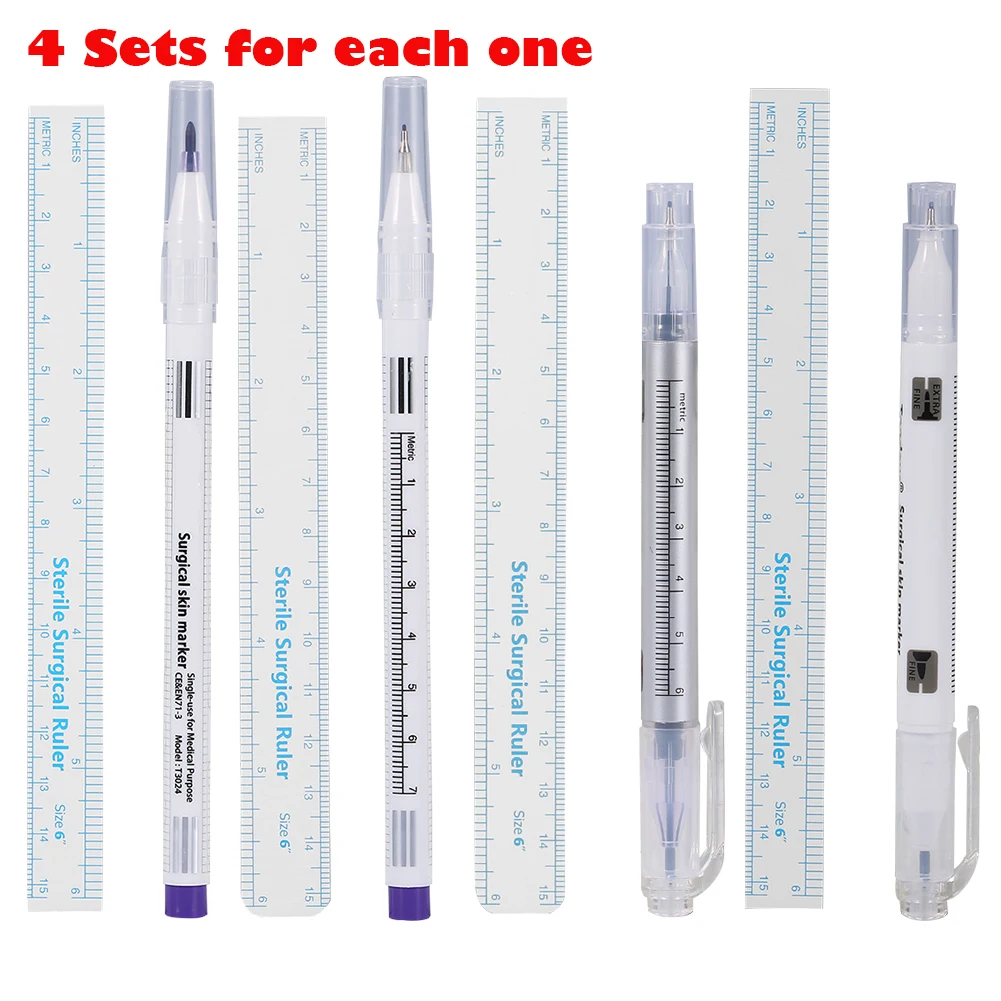 2 набора одноразовых маркеров для татуировки кожи, 4 типа, водостойкий хирургический инструмент для пирсинга + измерительная линейка, аксессуар для позиционирования макияжа