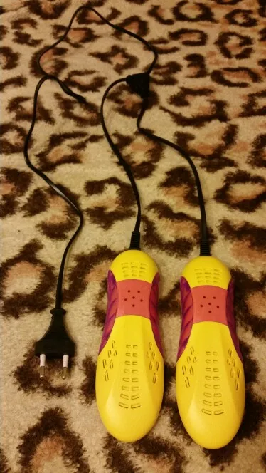 хорошая сушилка за 350 рублей. за 3-4 часа сырые и потные ботинки/кроссовки высыхают и "освежаются". Температура нагрева до 40-50°c так что даже кожаные изделия не по портятся. На фото сушка кожаных кроссовок пр-ва РБ для занятий со штангой.