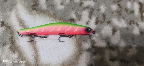 Отличный воблер, заказываю второй, обычной расцветки, первый был арбузный. Воблер медленно тонет, играет хорошо, система дальнего заброса работает, при быстрой встряске грузик отцепляется от магнита и перемещается к хвосту, при ударе об воду обратно примагничивается. Доставка быстрая, 2 недели, трек отслеживался. Рекомендую и продавца и товар.