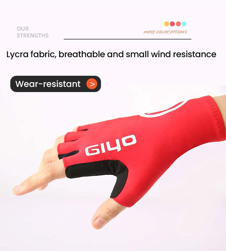 Короткие велосипедные перчатки Giyo без пальцев, Нескользящие велосипедные митенки из лайкры, спортивные гоночные перчатки без пальцев для горного и шоссейного велосипеда