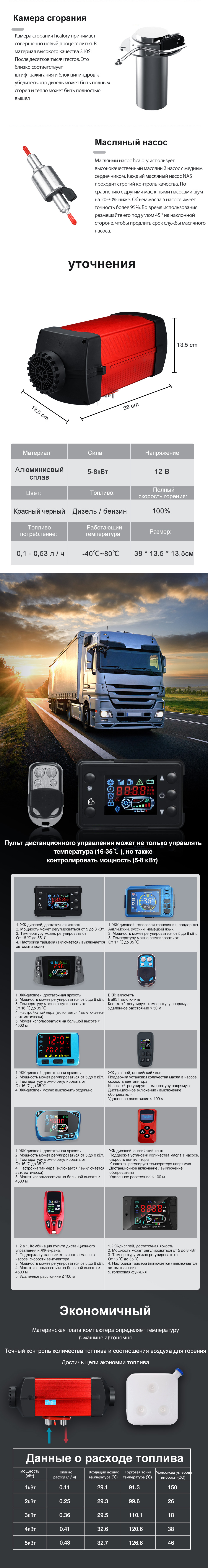 Дизельный обогреватель воздуха, с одним отверстием, 12 В, 5000 Вт, с экраном, пультом и глушителем, для лодок, автобусов, автомобилей. Заказ делал со склада России. Пришел за неделю, но радость была не долгой. При осмотре обогревателя выяснилось, что крыльчатка нагнетания воздуха не крутится, задевает за корпус мотора и датчика оборотов. Крыльчатка посажена слишком глубоко. При этом упаковка и корпус обогревателя, целые видимых дефектов нанесенных вовремя транспортировки нет. Возникает вопрос как данный обогреватель проходил проверку на заводе? Складывается впечатление, что данный агрегат произведен не на заводе, а в подвале. Настроение испорчено. Крыльчатку поправлю, дай бог руки не из энного места растут. После проведу запуск данного агрегата. Если вылезут еще проблемы дополню этот отзыв. И открою Спор. Кстати батареек в пульту нет.