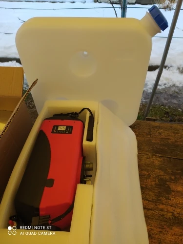 Пришло в целости, курьером. Повезло, ни одной трещины. Упаковано с завода в одной коробке, все детали на месте. Работает отлично, греет хорошо, бак на 10л. К топливу не капризна. Разгоняется медленно в отличии от известных брендов. Инструкция на русском видимо переведена автоматически. В дистанционном брелоке нет батареи, не критично, можно без него проверить.