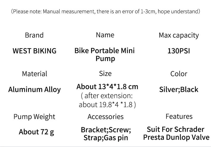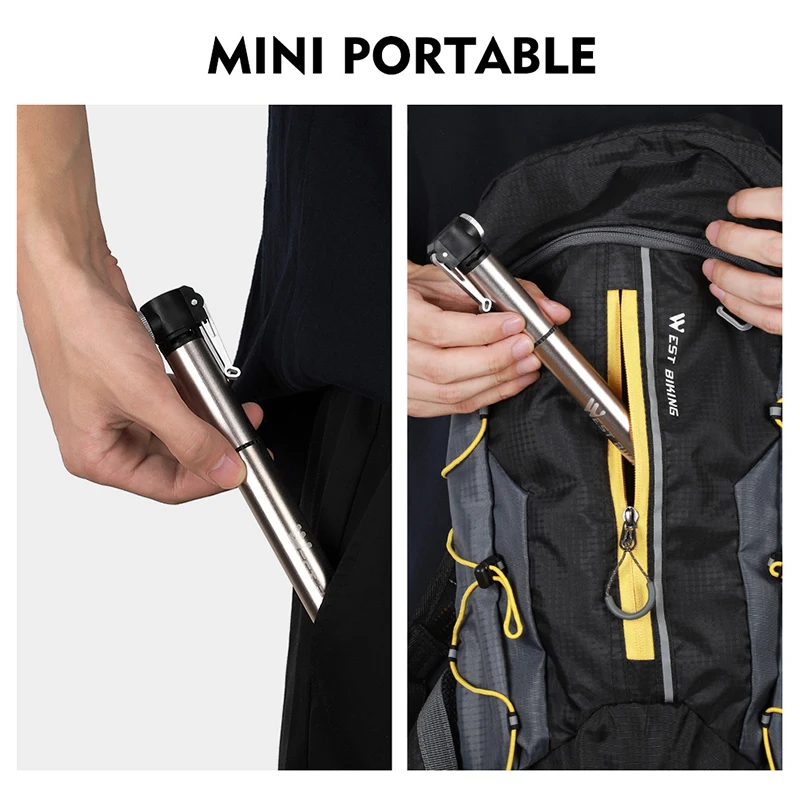 Велосипедный мини-насос WEST BIKING, алюминиевый сплав, ульсветильник, для накачки шин горных и дорожных велосипедов, с клапаном, пневматический ручной насос