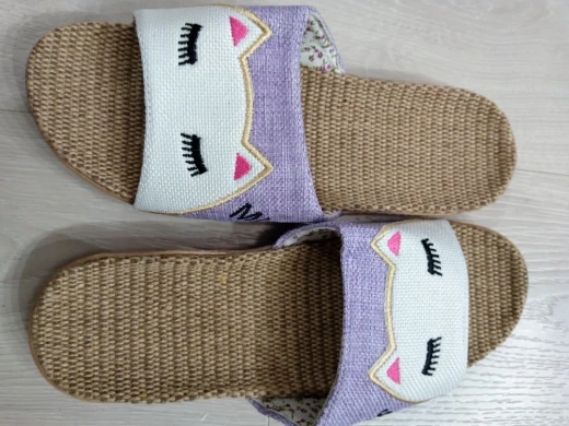 Шлепанцы Suihyung женские льняные, Симпатичные дышащие пляжные тапочки с котом, сланцы, домашние сандалии для девушек, Лето Тапочки льняные