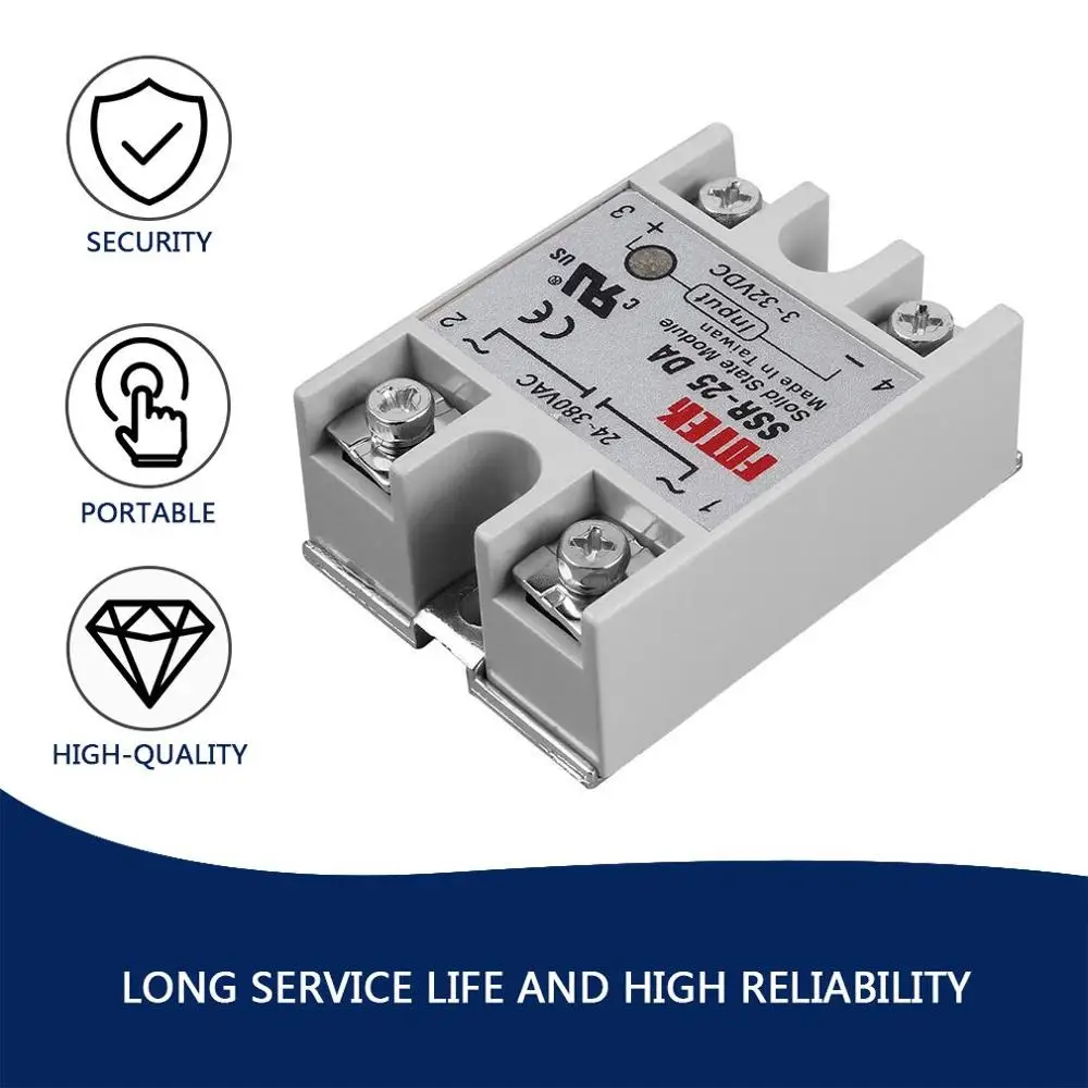 Твердотельный релейный модуль, SSR-25DA 25A 250V 3-32V DC вход 24-380VAC выход, Прямая поставка, 1 шт.