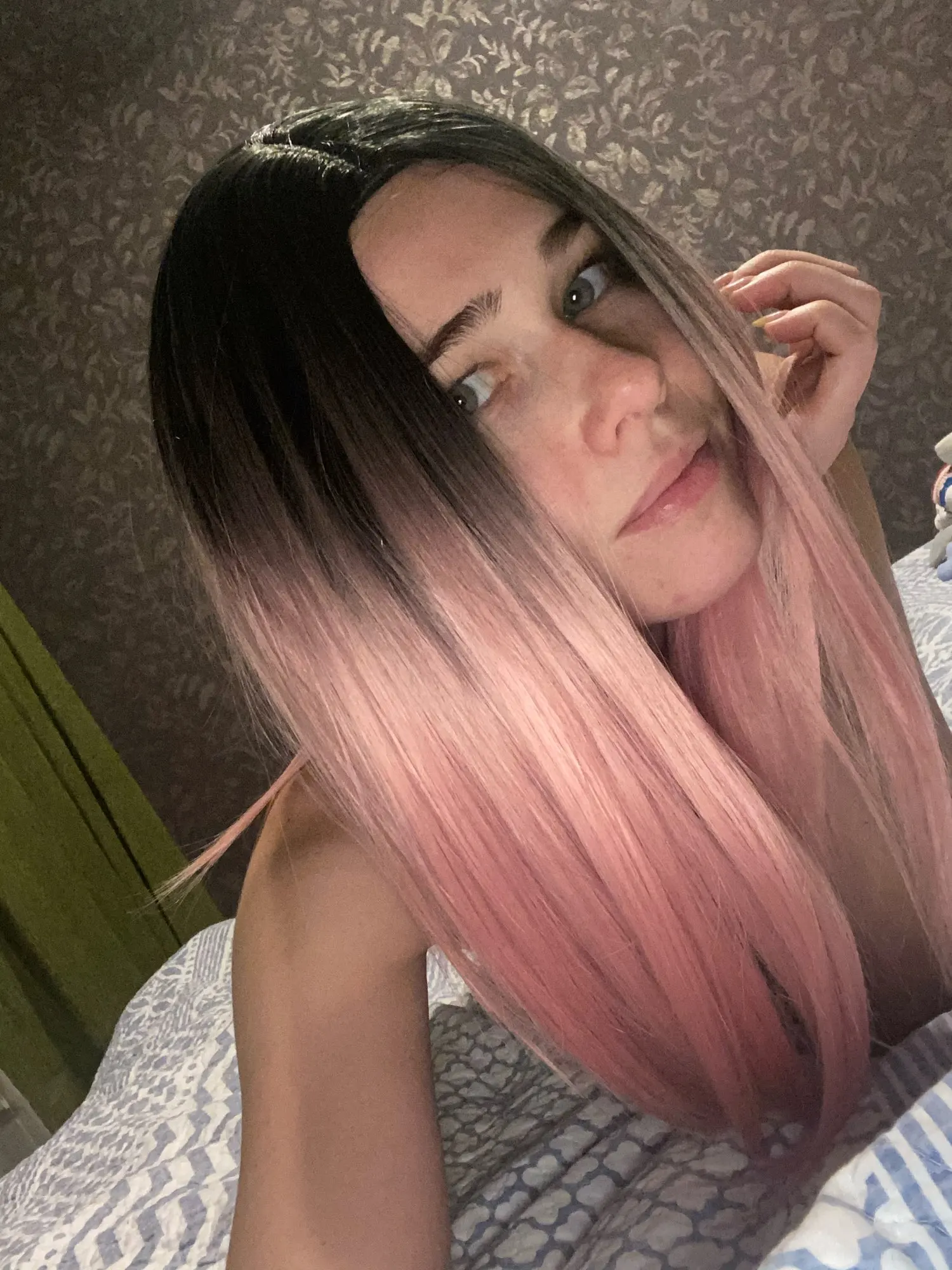 Хорошенький, пробор сидит аккуратно. Не совсем матовый волос, наверное, попудрю макушку для идеальности. Цвет красивый, как на картинке. Действительно интересный парик, украшает.