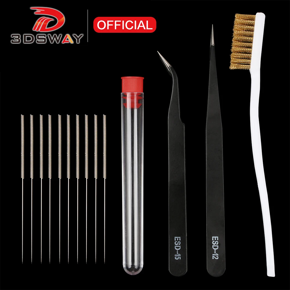 Детали для 3D принтера 3dsway 10 шт.лот, сгибаемый очиститель сопла, Hotend, чистящая игла, сверло, кисть, пинцет, набор инструментов для Ender 3