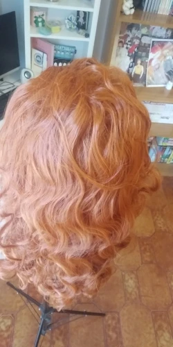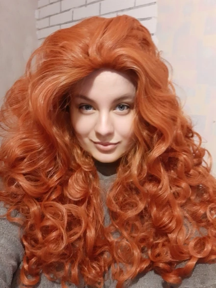 Парик замечательный. Совсем не выглядит дешевым. Цвет насыщенный каштаново-рыжий. Блеск есть, но умеренный, без излишеств. Кудри красивые. Сзади пряди длиннее, чем спереди, и это плюс. В итоге покупкой очень довольны!
